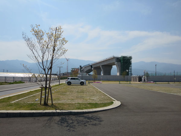 今回は、中央市周辺を訪れます。名称の通リに甲府盆地の中央に位置します。今回のスタート地点近くには、リニア新幹線・工事中の背が高い陸橋が目の前に迫ってきます。迫力があります。釜無川を渡るリニア新幹線の橋です。隣の甲府市大津町に新幹線の駅ができるそうです。この辺りは、釜無川に笛吹川及び鎌田川に挟まれたのどかな田園地帯になります。これからは、急激に環境が変わっていくと思われます。ウォーキング途中にて(山之神・馬籠)珍しい地名が目に入ります。旧濁川舟運に関する面影が残念ながら探しても見当たらないです。